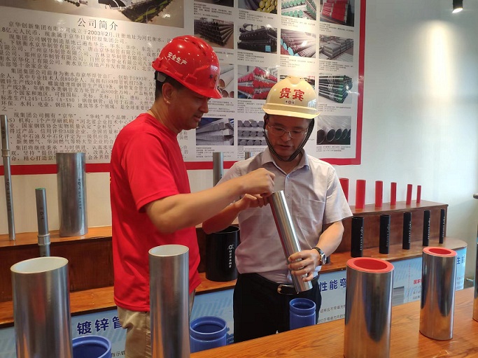 5月23日,广州市花都区工商联领导莅临我司调研指导工作,听企业心声、帮企业解忧、促企业发展,与企业负责人进行深入交流。 广州京华制管有限公司总经理傅利军先生向区工商联党组书记袁辉明详细汇报了广州京华的经营情况、发展情况、疫情防控以及当前工作思路等。袁书记对我司的发展成绩给予了高度肯定,对公司的发展理念和工作思路表示十分赞赏。 袁书记表示,工商联与企业如同桥梁纽带,互助互推,相互成就。感谢广州京华对工商联工作的支持,并对企业在商会建设、疫情防控等方面作出的积极贡献表示肯定。