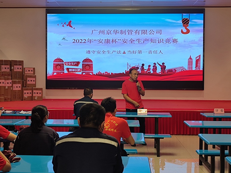 广州京华制管有限公司将以此次“安康杯”安全生产知识竞赛为契机,持续强化员工安全生产责任意识,开展学安全、用安全、懂安全教育活动,切实提高员工安全防范意识,促进安全生产水平提升和安全生产形势持续稳定,推动广州京华经济高质量发展。
