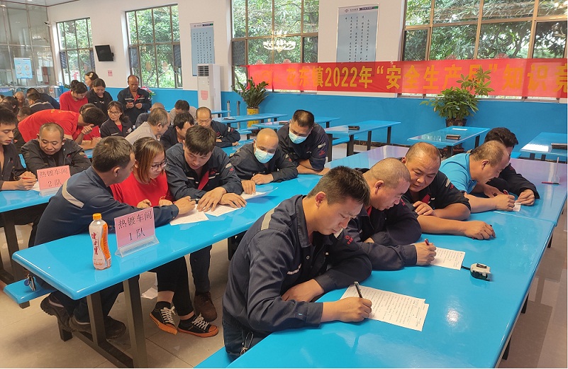 为进一步普及安全知识,强化安全教育,进一步推动安全文化有效落地,提高广大员工安全红线、底线意识,促进安全生产月各项工作有序开展,6月13日,广州京华制管有限公司举办了以“遵守安全生产法,当好第一责任人”为主题的2022年“安康杯”安全生产知识竞赛。公司副总经理刘洪亮、生产处长张震、工会主席付永军、安环科主任李光建、制管车间主任李国春、动力设备科主任顾兴春及热镀车间主任王涛、杨杰峰出席活动并担任此次活动评委。