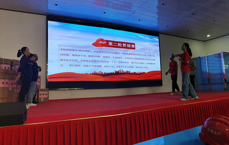 随后,第二轮的安全词语“你比我猜”环节将会场气氛推向高潮。上台比划的成员贴合自身工作实际,大显神通、各出奇招,这轮要求员工对安全图标、安全词语的熟悉程度,比的是队友之间的默契程度,拼的是速度,赛的是成绩!