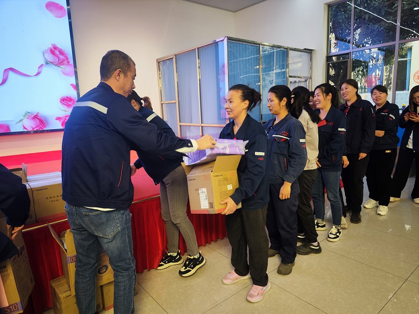 接下来就是给我们全体女职工颁发礼品环节啦!此次庆祝”三八“妇女节活动,不仅丰富了女职工文体生活,增强了大家的凝聚力和幸福感,同时也活跃了气氛,注入了正能量,展示了我司女职工团结拼搏、蓬勃向上的精神。