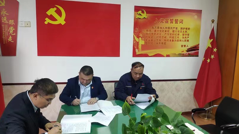 广州京华制管有限公司党支部与中国建设银行广州花都分行办公室(人力资源部)党支部以及中国建设银行广州花都花东支行党支部现场签订了结对共建协议书。本次签约仪式标志着三方未来两年的“红联共建”活动正式拉开帷幕,共建方初步形成了资源共享、合作共赢、优势互补、注重实效的党建工作新格局,计划通过党员互动、活动互联实现资源优化配置,以党建为共建抓手,搭建平台进行业务交流,加强党建和业务双融合,以党建引领高质量协同发展。