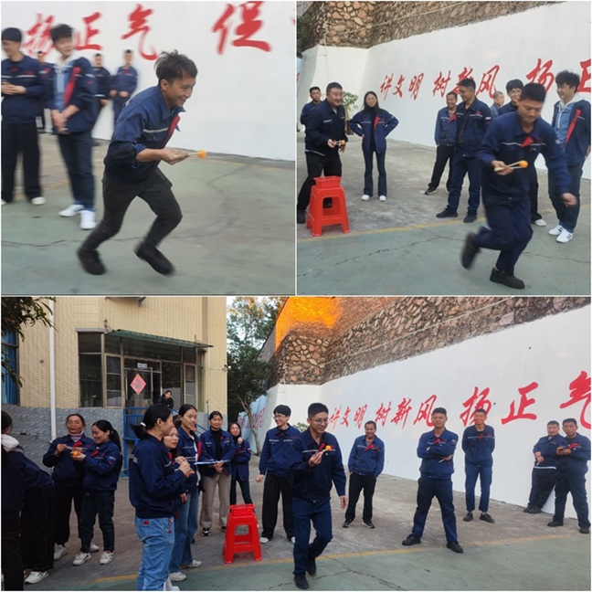 本次趣味运动会设置个人和团体两大类别项目,兼顾趣味性与参与感,适配不同员工兴趣需求。 个人项目中,跳绳赛场节奏紧凑,选手们脚步轻快、身姿灵活矫健;踢毽子环节里,大家精准把控节奏,毽子起落间尽显娴熟技巧;定点投篮区,参赛员工凝神瞄准、果断出手,每一次命中都引来现场阵阵喝彩;象棋对弈桌前则氛围沉静,选手们沉着思索、谨慎落子,在楚河汉界间博弈智慧。 团体项目更聚焦协作精神,成为本次活动亮点。“同舟共济”木板鞋项目中,各队伍成员脚绑板,齐声喊着口号同步迈步,默契前进,摔倒后互助再出发;“同心鼓”挑战里,队员们围站鼓周、手握绳柄,紧盯空中排球,齐心协力让排球平稳弹跳;“筷子夹乒乓球”环节,选手接力传递、互帮补位,紧张欢乐中比拼协作效率,充分展现“心往一处想、劲往一处使”的团队力量。
